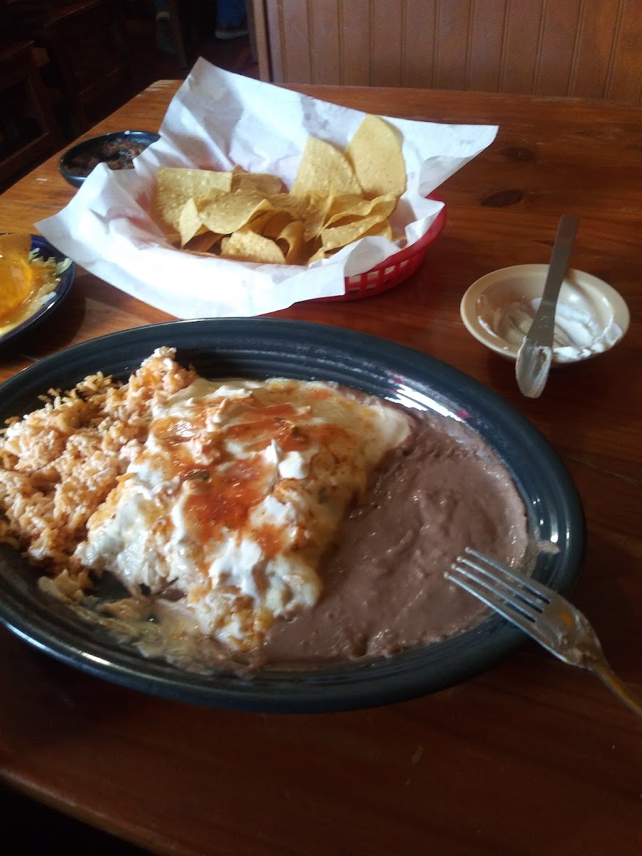 Enjoyed a delicious lunch today. The Chicken Enchiladas and Fiesta Egg Rolls were excellent. The salsa was brought out steaming hot, however; the tortilla chips were room temperature and somewhat greasy. The staff was courteous and efficient, regularly checking to see if we needed anything. It was our first visit and we plan on coming back.